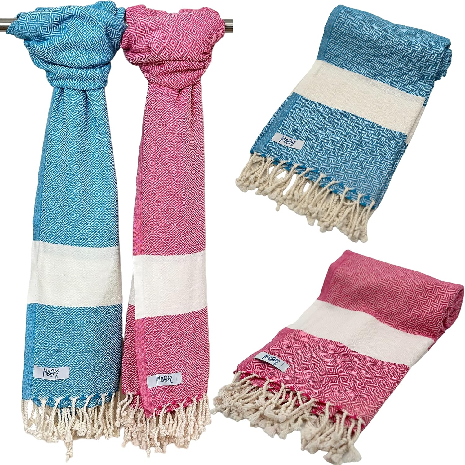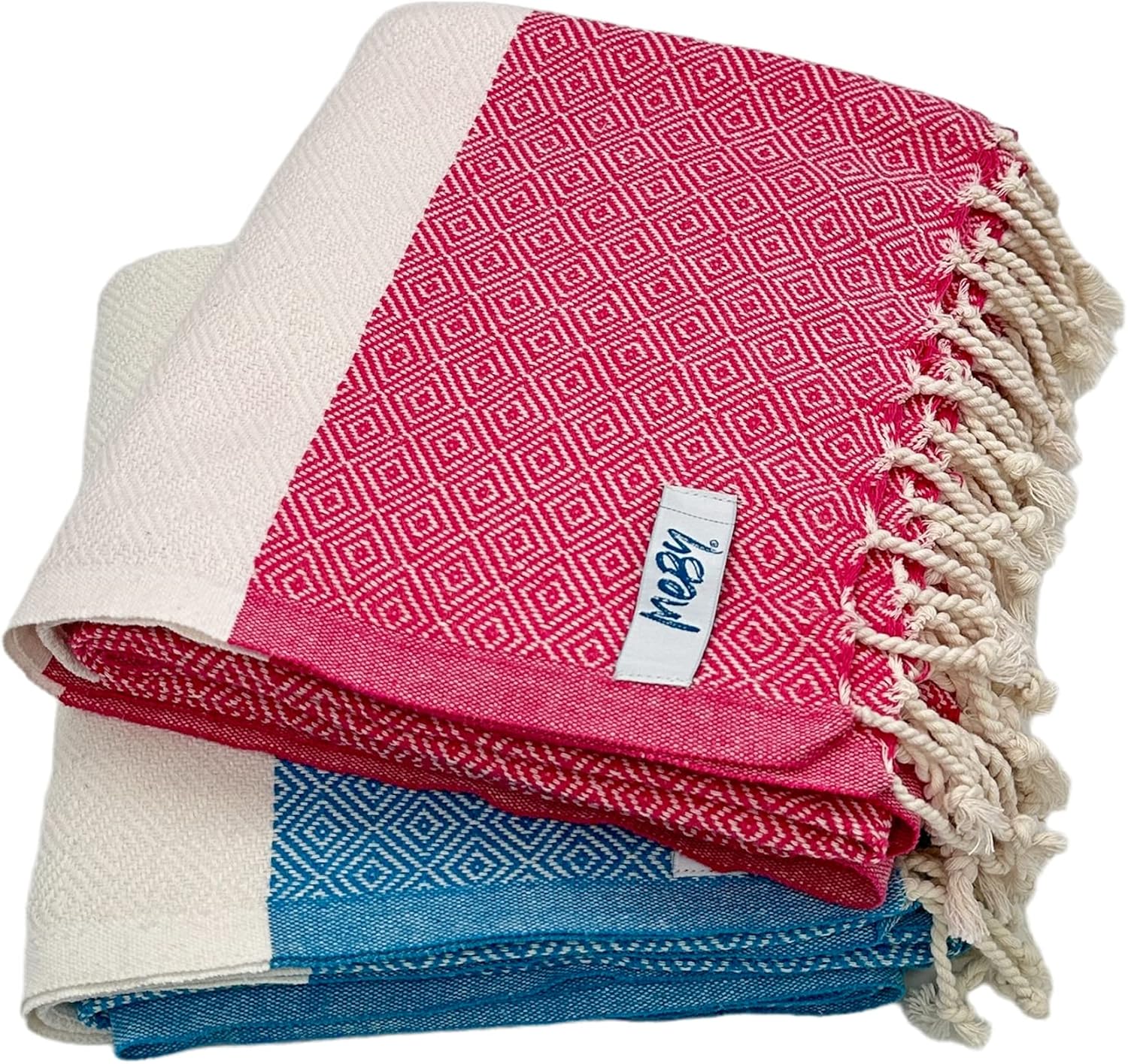 2er Set Saunatuch XXL Groß 90×180 cm. 100% Baumwolle. Strandtuch, Badetuch, Rosa & Türkis